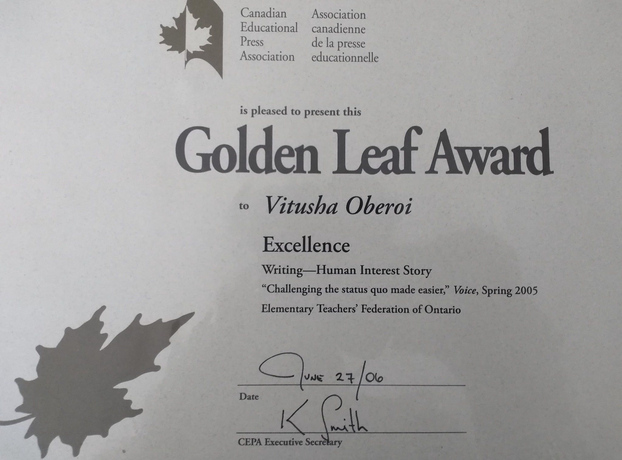 ETFO Voice • 19th June 2005 Profile: Anita Dhawan - Challenging the Status Quo Made Easier with ETFO Support Anita Dhawan showed spunk as a girl of 11 when she broke an ancient taboo by embracing a low-caste woman in her native India. Later, she challenged the patriarchal society of her hometown, who mistreated her widowed mother because in their eyes a woman merited no dignity after losing her husband. As an adult, the iconoclastic Anita smashed yet another barrier by forcing York University to recognize her foreign credentials, paving the way for her teaching career in Canada.